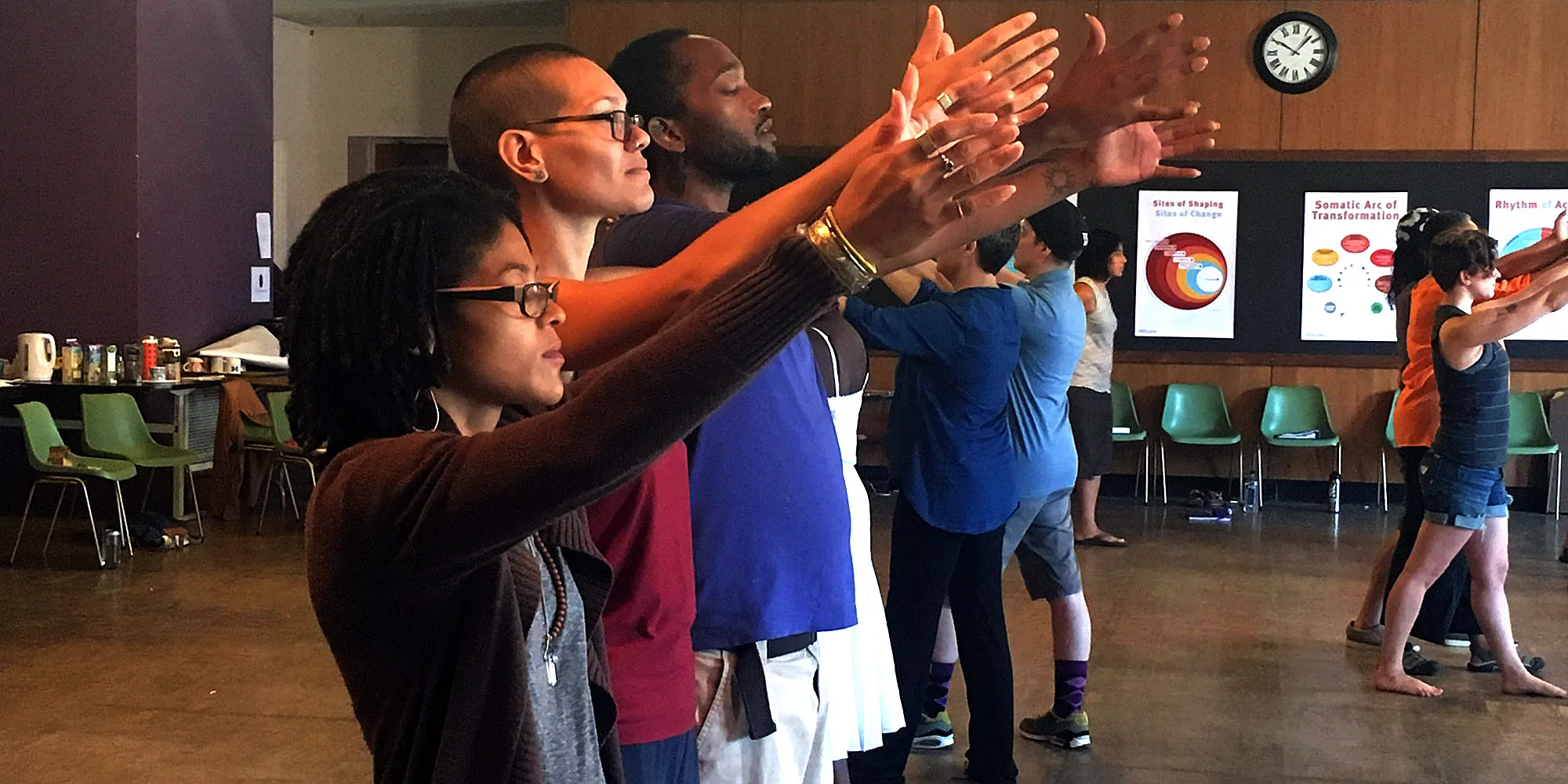This lineage of politicized somatics begins with the understanding that we are all shaped by our families, communities, societies, and environments. We embody the systems around us — including systems of oppression. These systems do not teach us the skills we need for liberation: interdependence, grounded strategy, transformative conflict, centered boundaries, and collective resilience. To move toward liberation, we must notice our automatic responses, build new skills, and practice new ways of being.